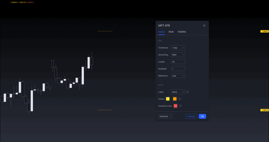 The Average True Range (ATR) measures the average volatility of the market. The Multi-Timeframe ATR Levels applies the average volatility and plot its levels on the chart. It can complement your strategy in order to: